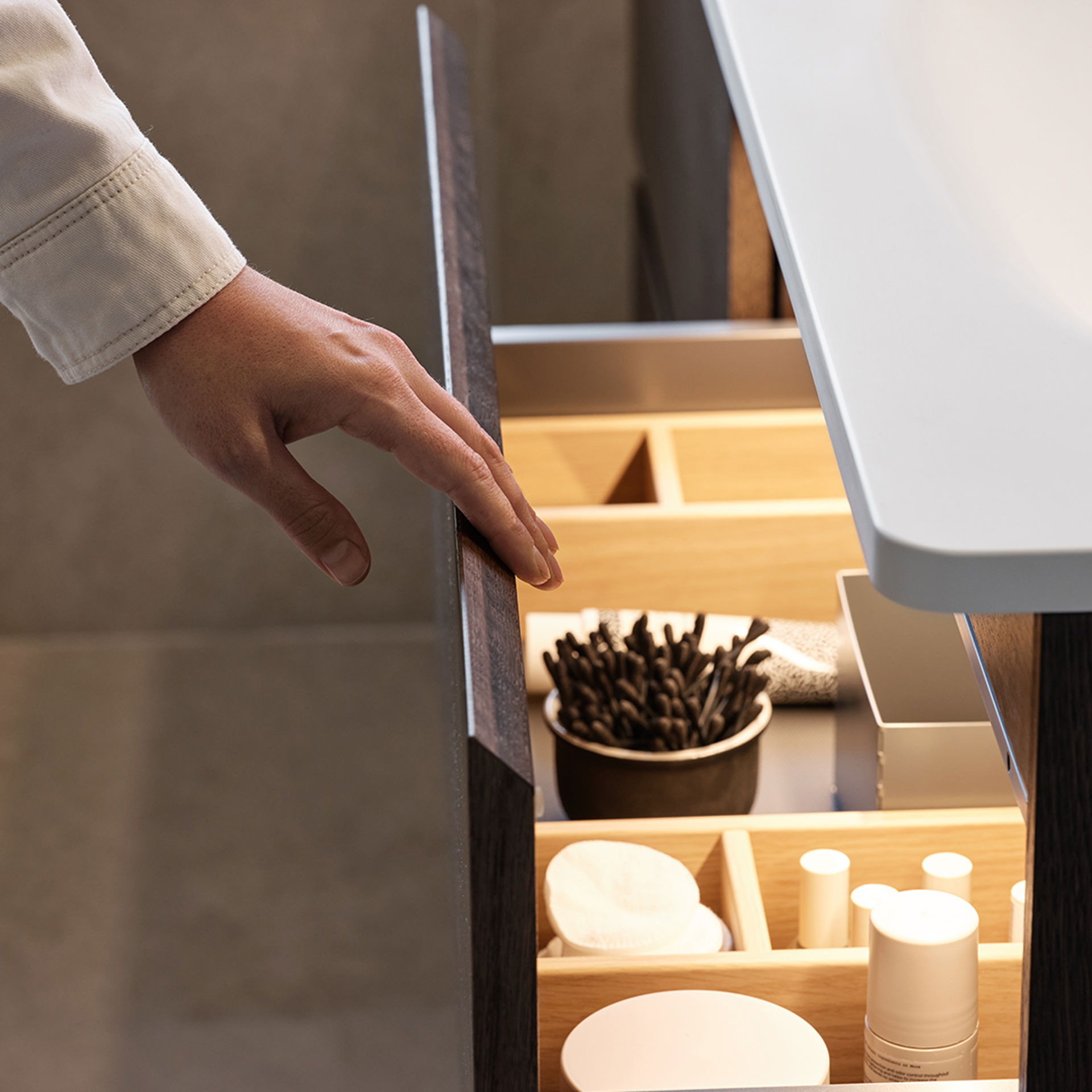 Flow-døren har en skandinavisk stil med et enkelt formspråk. Den stilrene døren i malt eller finér har en lett avrundet kant og faset grepslist som skaper rene linjer og et stramt uttrykk. Flow passer for deg som ønsker et interiør med en klar og avskalert design som samtidig har organiske, myke og uttrykksfulle elementer.