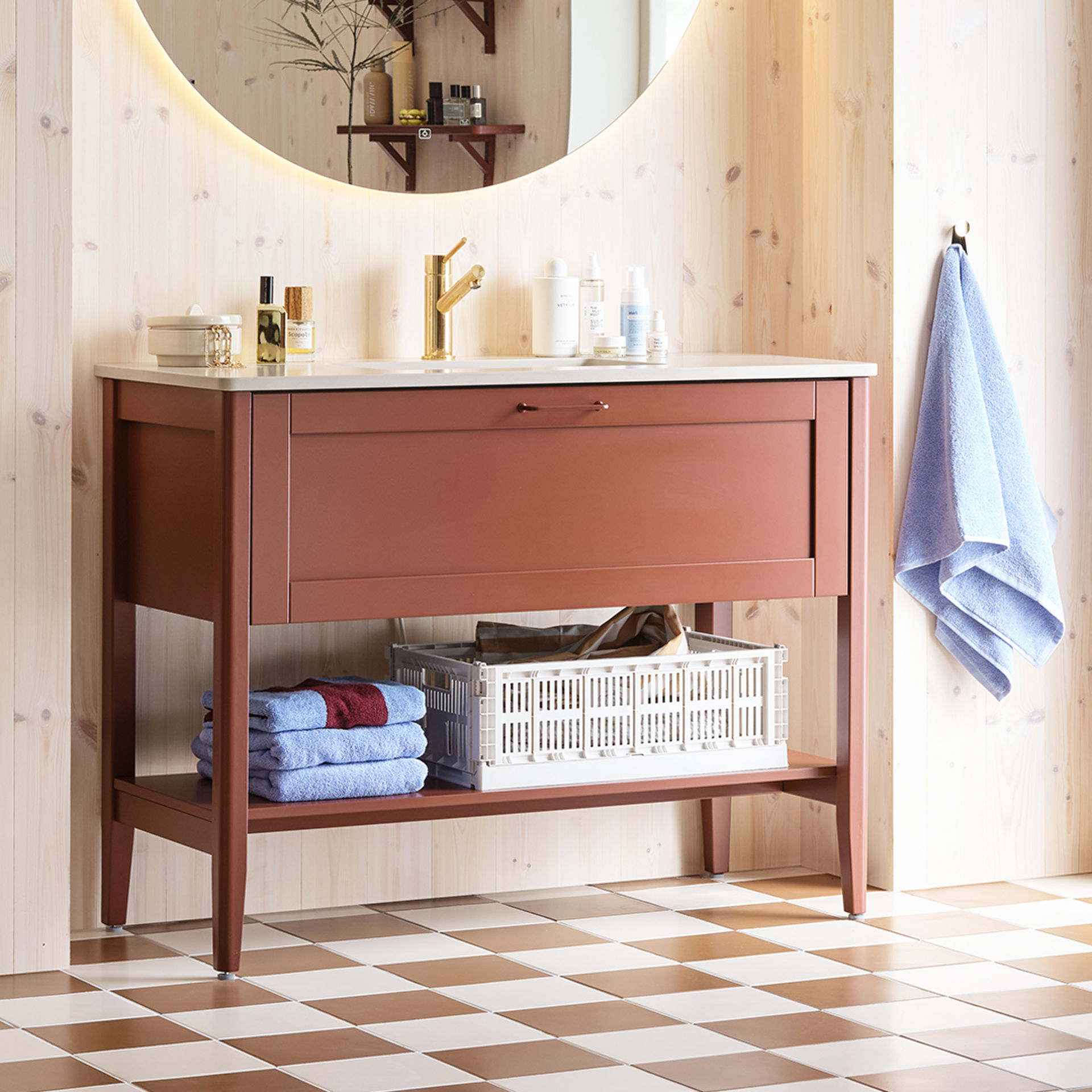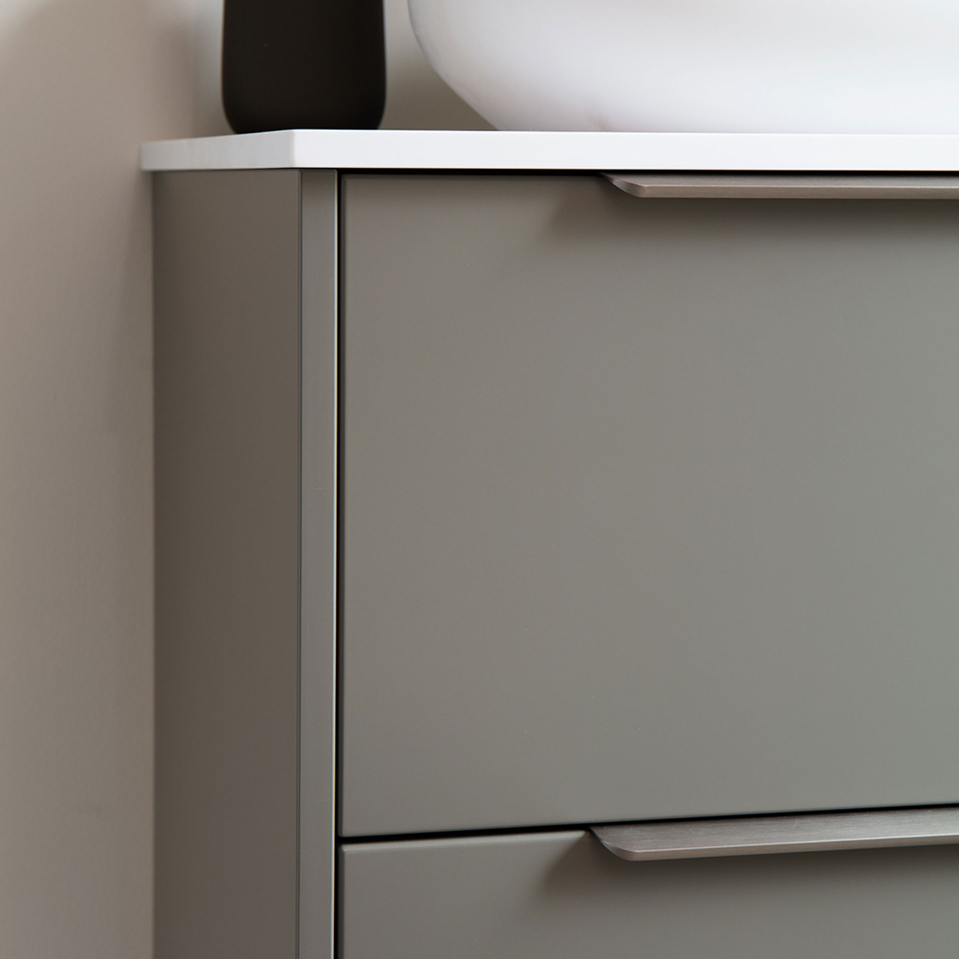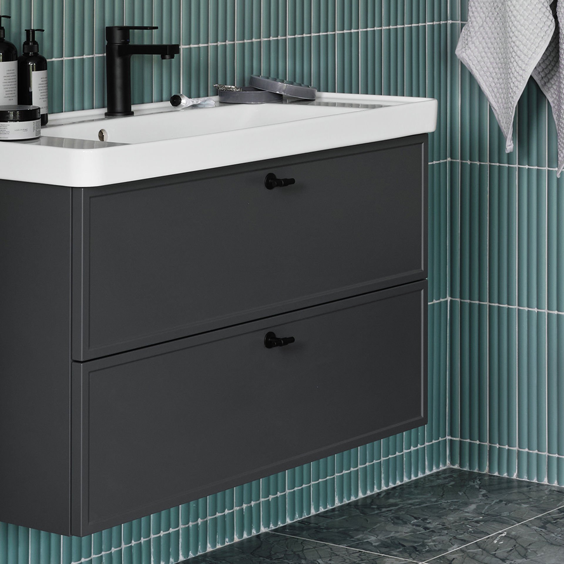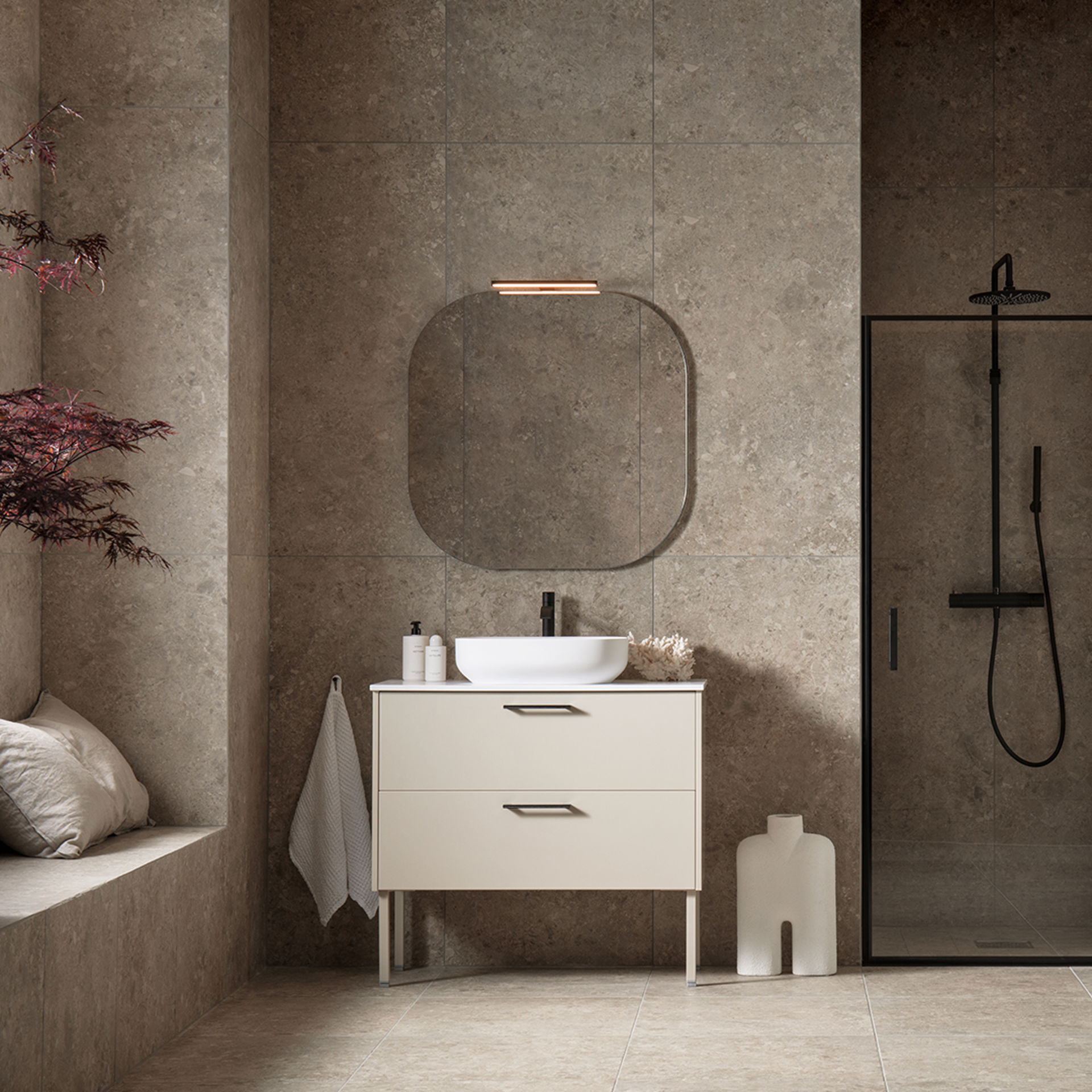 Moa-døren har et stilrent formspråk med enkle, rene linjer som skaper rom for ulike stilvalg. Den malte, glatte døren har en lett avrundet kant som gir et mykt uttrykk. Passer for deg som ønsker et baderom med et enkelt og tydelig uttrykk.