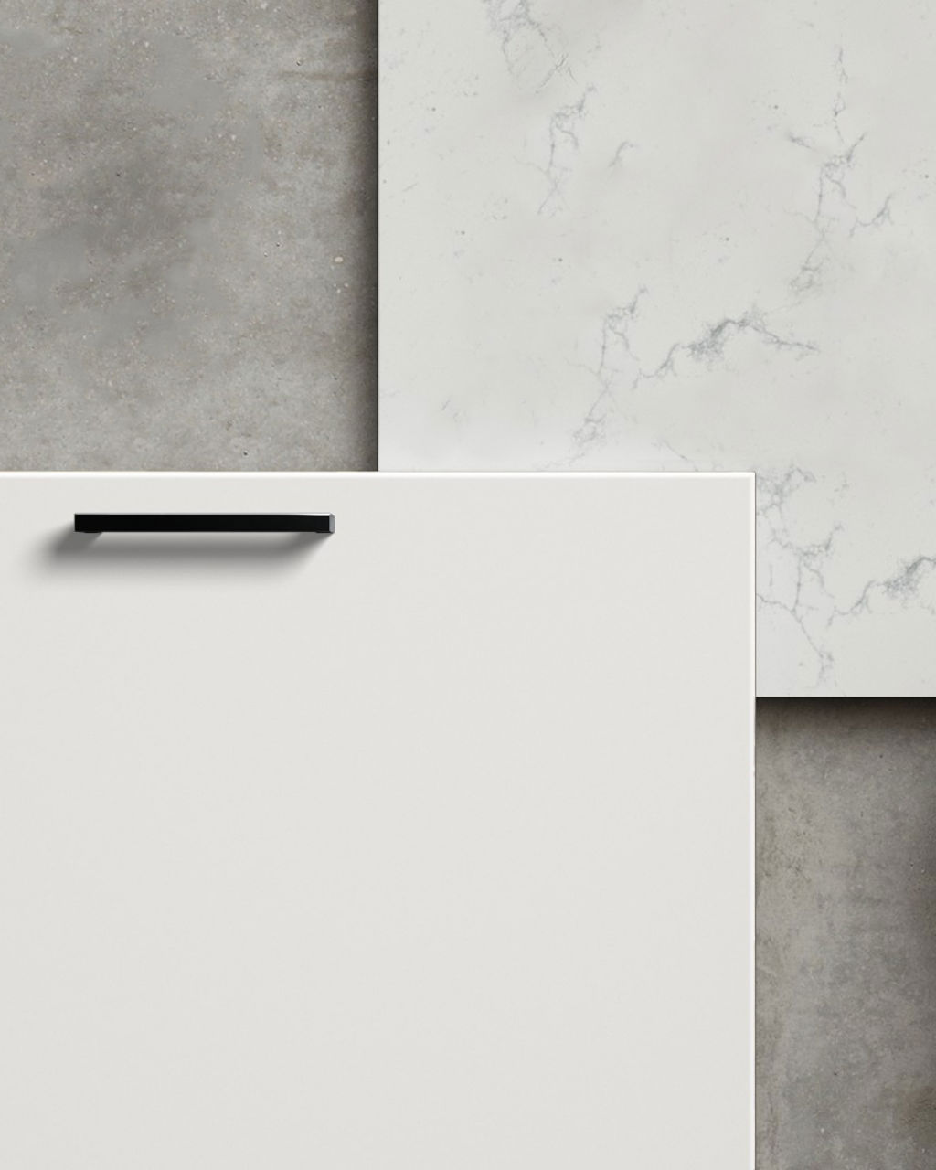 Malt dør av 19 mm MDF-plate med lett avrundet kant. Tilgjengelig i hvitt eller en av våre farger.