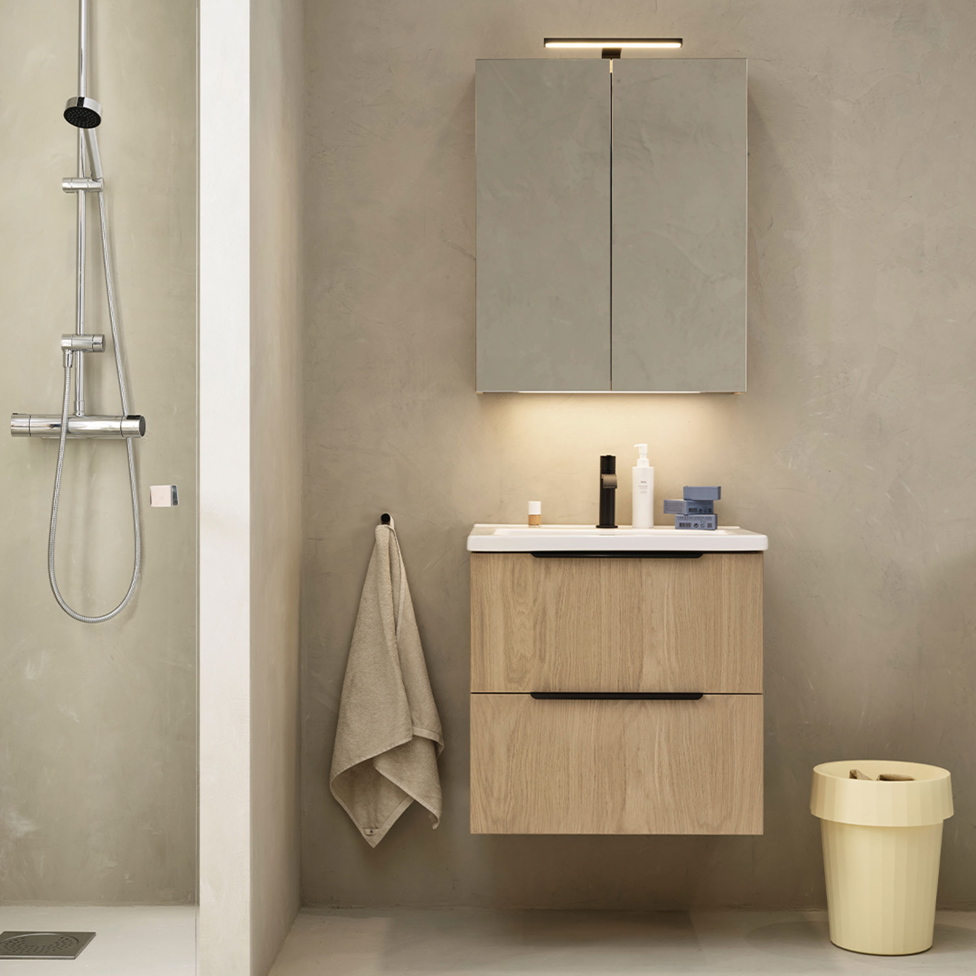 Rengjør som hovedregel tredøren med en fuktig klut med et mildt rengjøringsmiddel, og tørk deretter av med en fuktig klut for å fjerne rengjøringsmiddelet. Tørk til slutt av med en tørr klut. Husk å alltid tørke av under vaskeskap og på dørkantene. De er ikke konstruert for å tåle stående vann. For å gi dem en vedlikeholdsvennlig overflate er dørene lakkert. Siden tre er et levende materiale, kan det variere i utseende og endre seg over tid.